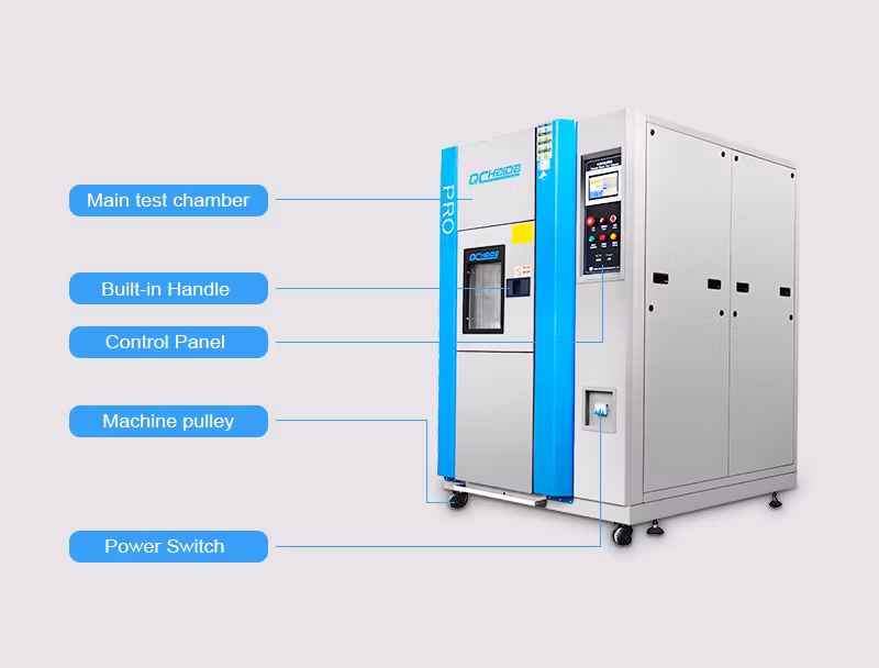 - Tres estructuras de cámara, cámara de alta temperatura, cámara de baja temperatura y cámara de prueba, control automático, tiempo de permanencia y conmutación ajustable.